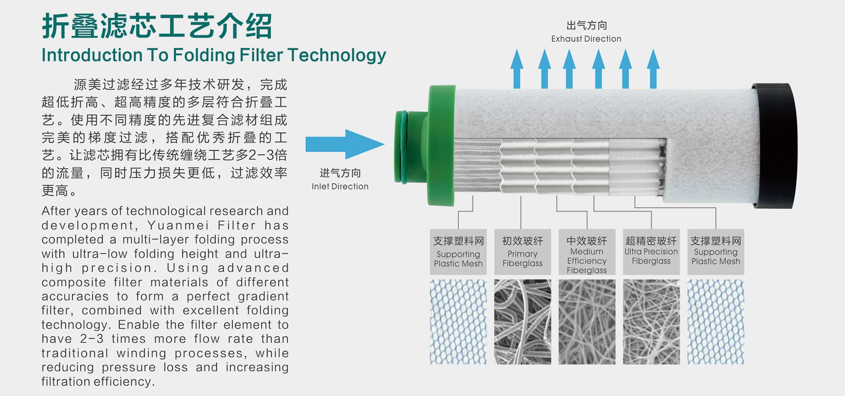 内部安装折叠滤芯,不锈钢过滤器壳体材质采用不锈钢(SUS304/316),内外表面均做抛光处理(粗糙度Ra0.3级)。滤芯选用高效精密滤芯,除菌款滤芯采用疏水性无菌聚四氟乙烯(PTFE)折叠膜材质,已通过100% DOP完整性测试,广泛应用于制药、半导体、食品化工等行业。